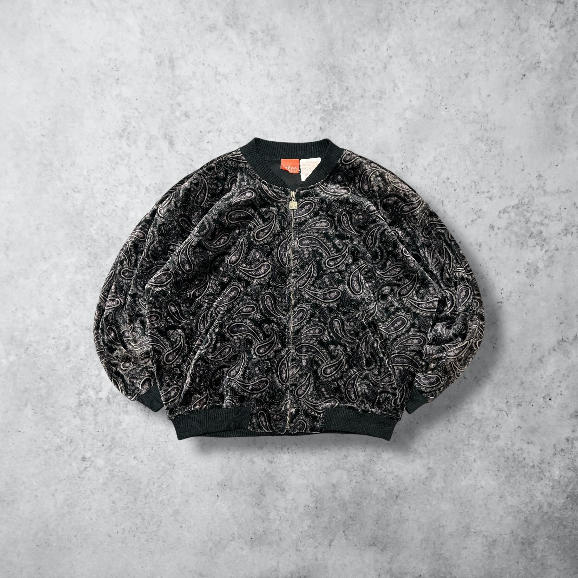 liz&co. 00s 韓国製 中綿ブルゾン ブラック×パープル ベロア調 ペイズリー L